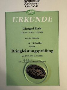 Waidmannsheil an Andrea, die mit ihrem Rüden Glengad Ecris am Wochenende die BLP mit lebender Ente mit herausragenden 311 (!) Punkten bestanden hat!